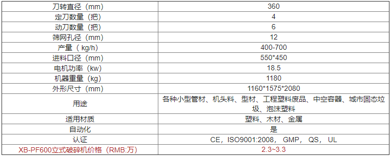| XB-PF600立式破碎機(jī)價(jià)格(RMB:萬(wàn)) | 歡迎來(lái)電咨詢 |