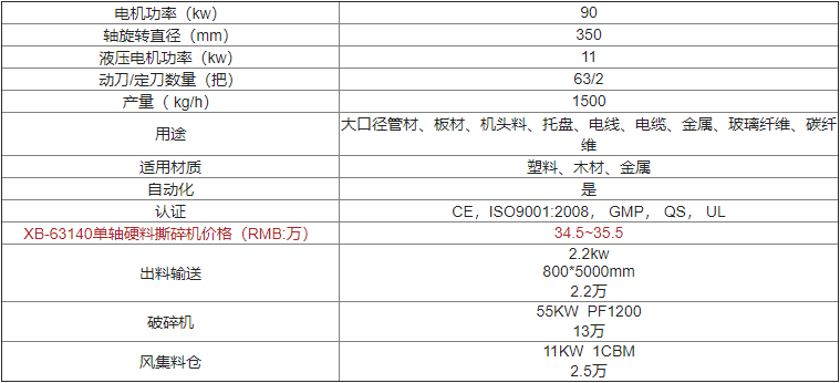 | XB-63140單軸硬料撕碎機(jī)價格(RMB:萬) | 歡迎來電咨詢 |