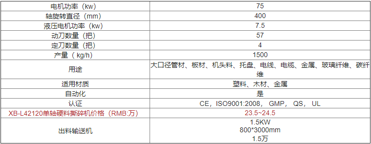 | XB-L42120單軸軟料撕碎機價格(RMB:萬) | 歡迎來電咨詢 |