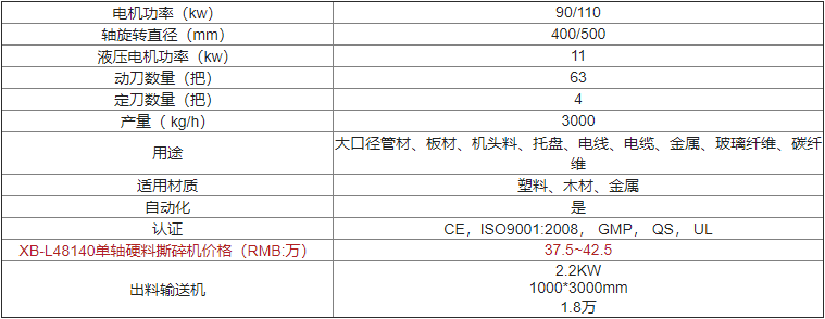 | XB-L48140單軸軟料撕碎機價格(RMB:萬) | 歡迎來電咨詢 |