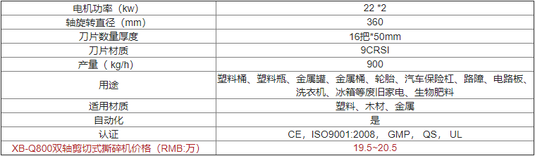 | XB-Q800雙軸剪切式撕碎機價格(RMB:萬) | 歡迎來電咨詢 |
