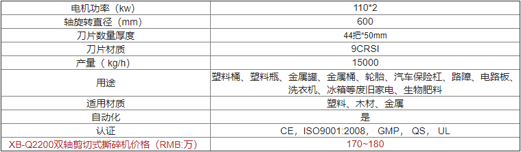 | XB-Q2200雙軸剪切式撕碎機(jī)價格(RMB:萬) | 歡迎來電咨詢 |