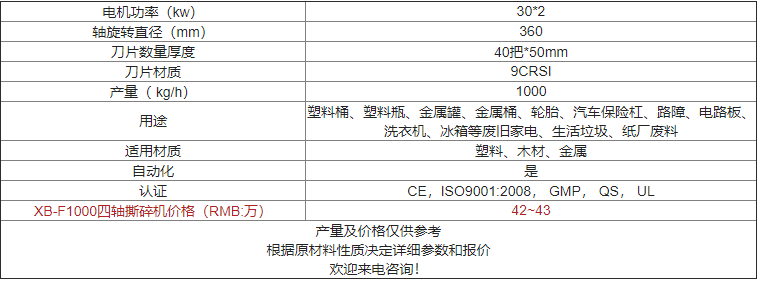 | XB-F1000四軸撕碎機(jī)價(jià)格(RMB:萬) | 歡迎來電咨詢 |