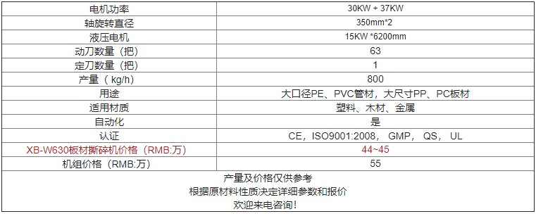 | XB-W630板材撕碎機(jī)價(jià)格(RMB:萬(wàn)) | 歡迎來(lái)電咨詢 |